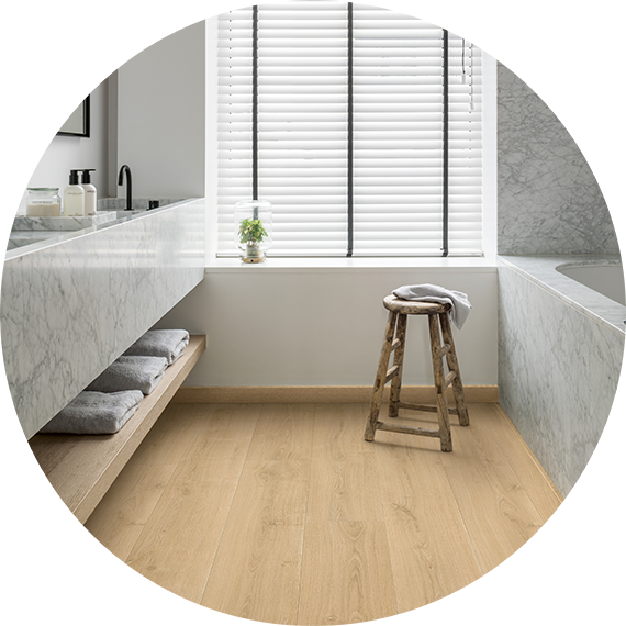 Điều này khiến sàn gỗ QuickStep trở thành lựa chọn hoàn hảo cho mọi không gian, bao gồm cả phòng bếp và phòng tắm.